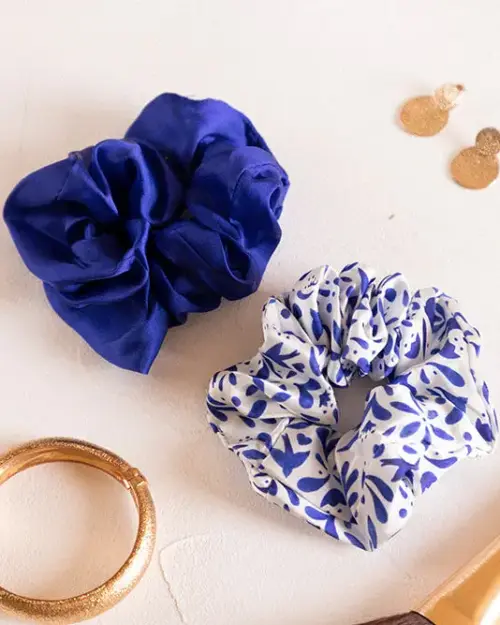 2er-Set Scrunchies – Haargummis in Blau – „Blue Swallows“