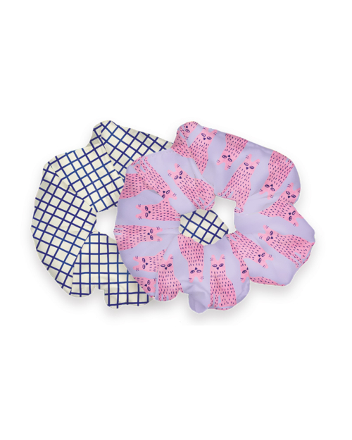 2er-Set Scrunchies – gemusterte Haargummis – „Happy Cat“