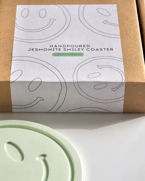 Jesmonite Untersetzer Smiley – für Gläser, Tassen, Dekoration – Hellgrün