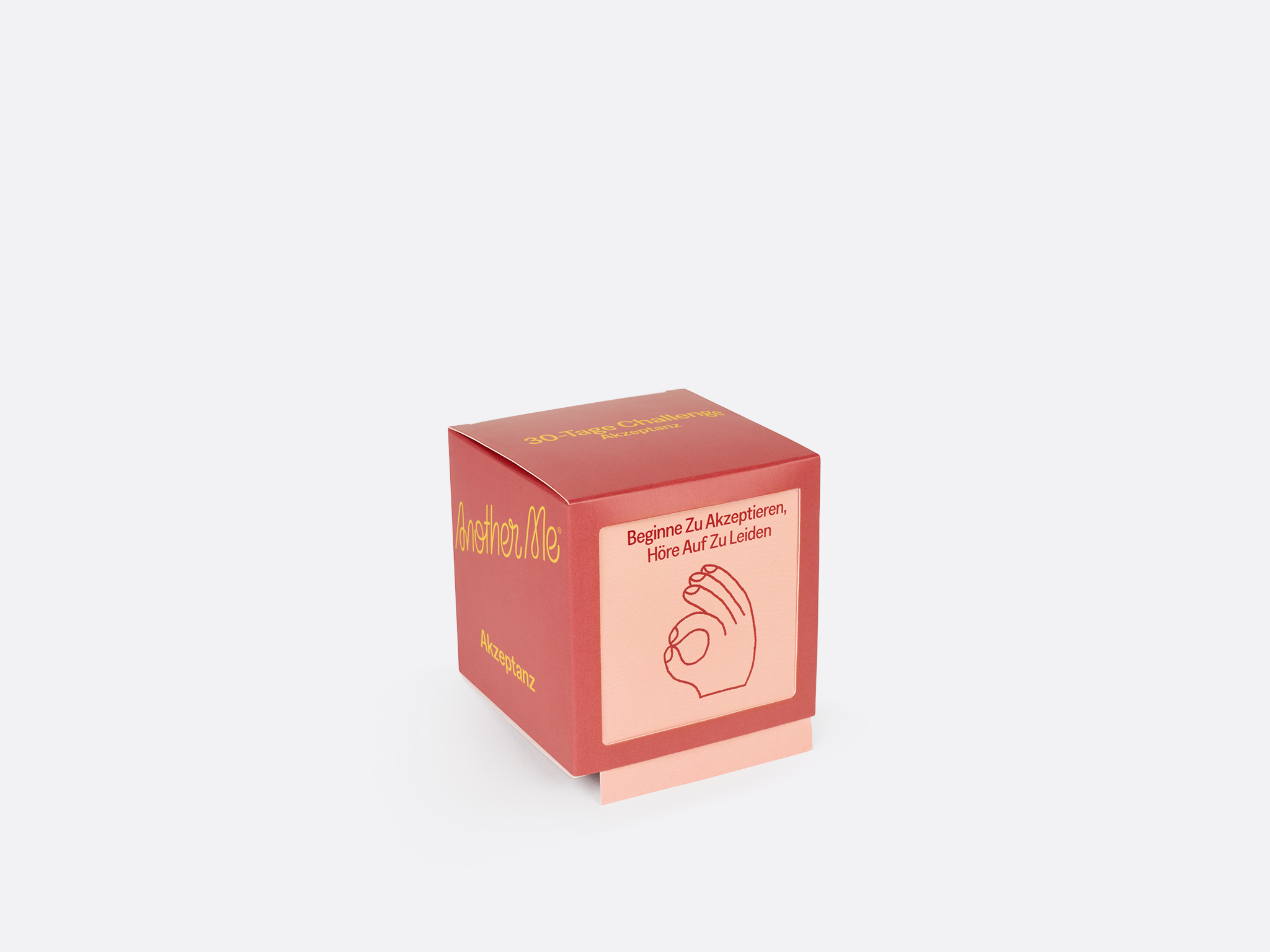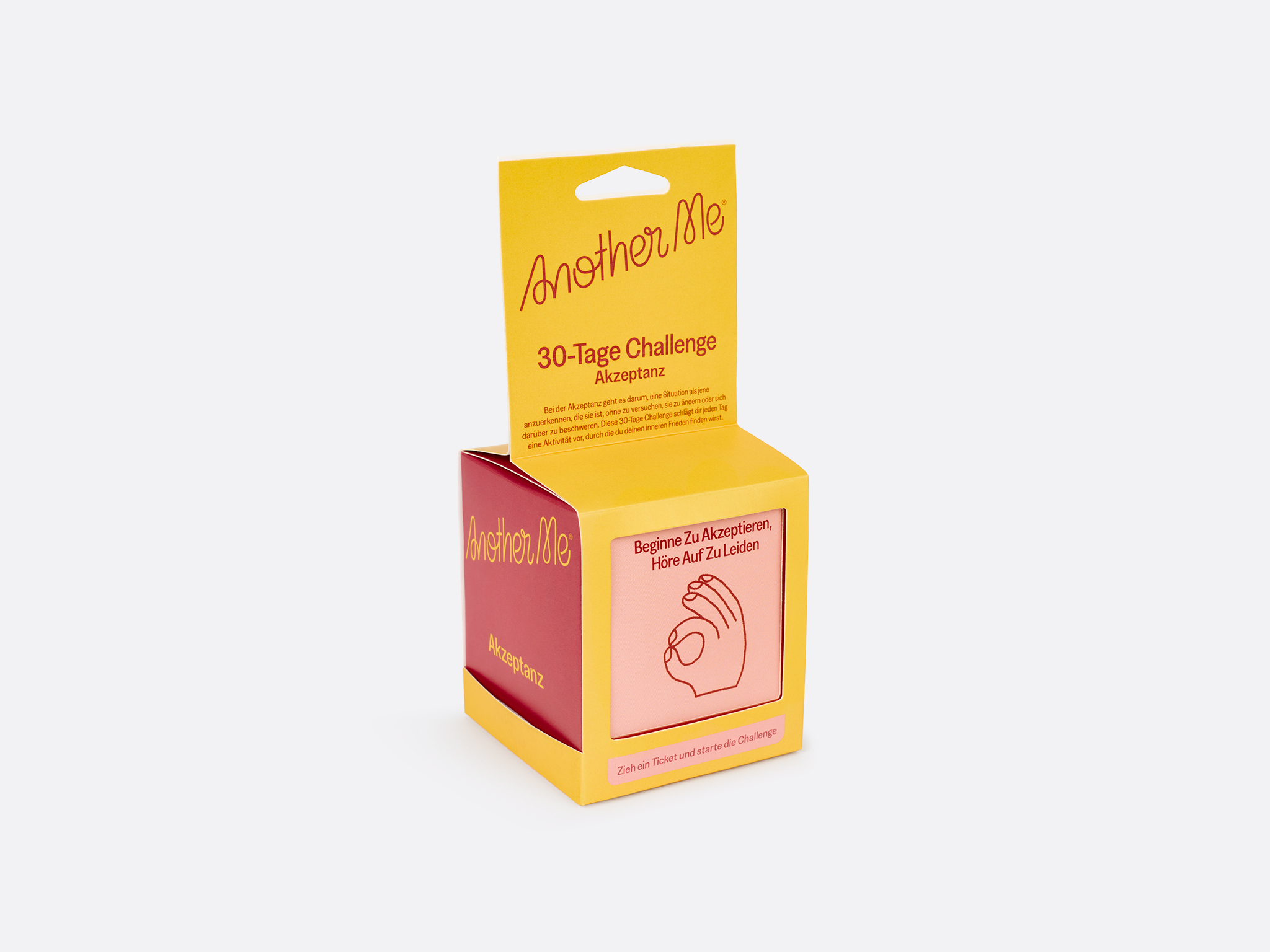Bist du bereit für ein Leben mit mehr Akzeptanz? Die Box „30-Tage Challenge Akzeptanz“ von Another Me enthält 30 Tickets mit Impulsen, die dich Tag für Tag näher zu deinem inneren Frieden und zu mehr Gelassenheit führen.