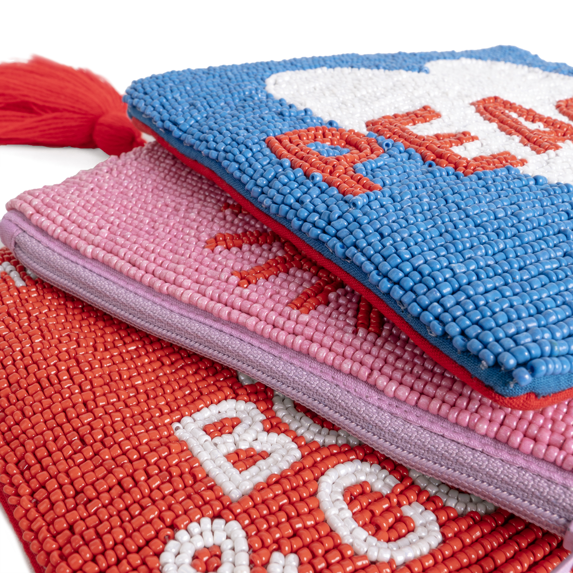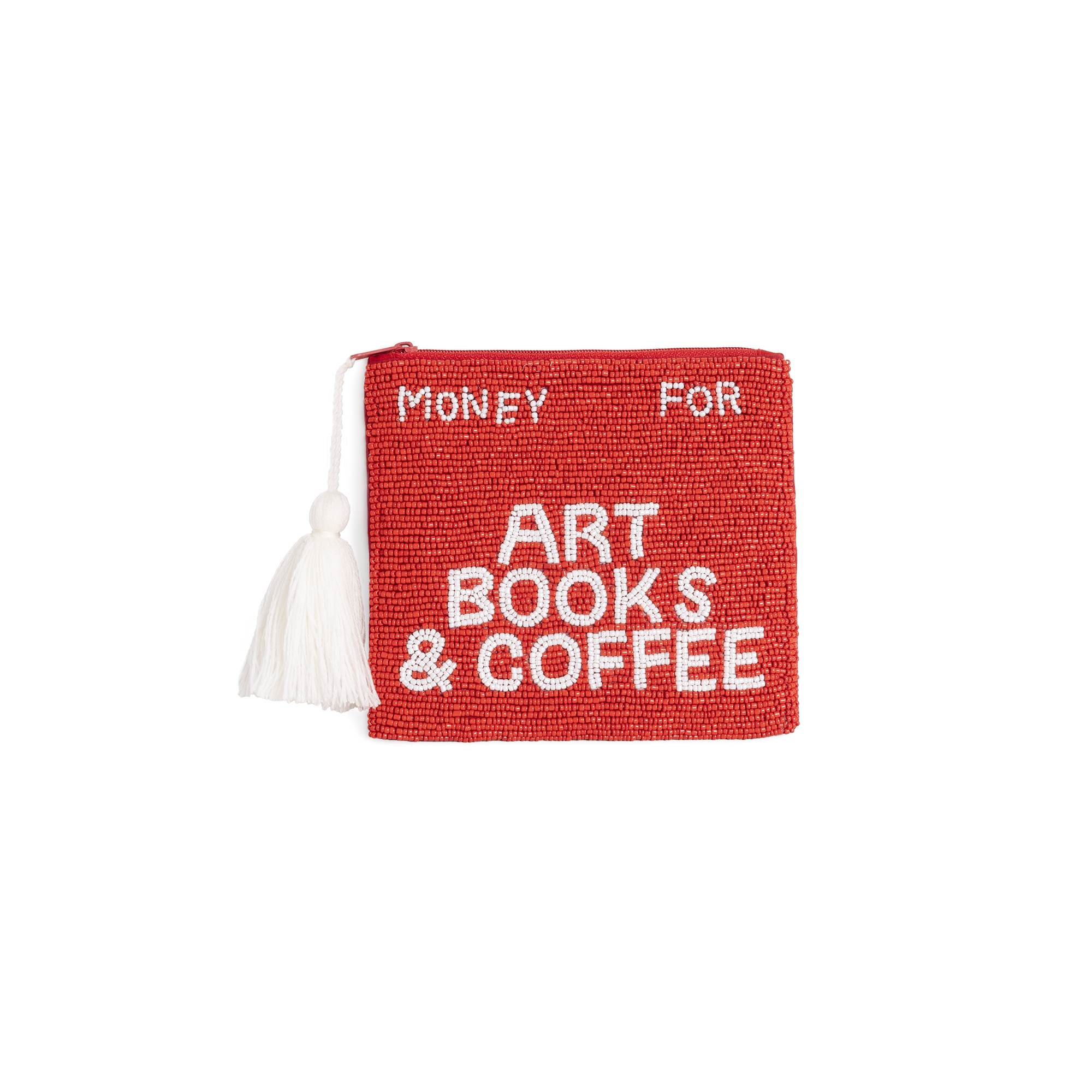 Für alle, die Kunst lieben, in Büchern versinken und bei einer Tasse Kaffee neue Ideen finden. Diese Clutch ist für euch. Das Motiv Art, Books & Coffee aus roten und weißen Glasperlen auf Baumwollstoff bringt euer kreatives Lebensgefühl stilvoll auf den Punkt.
