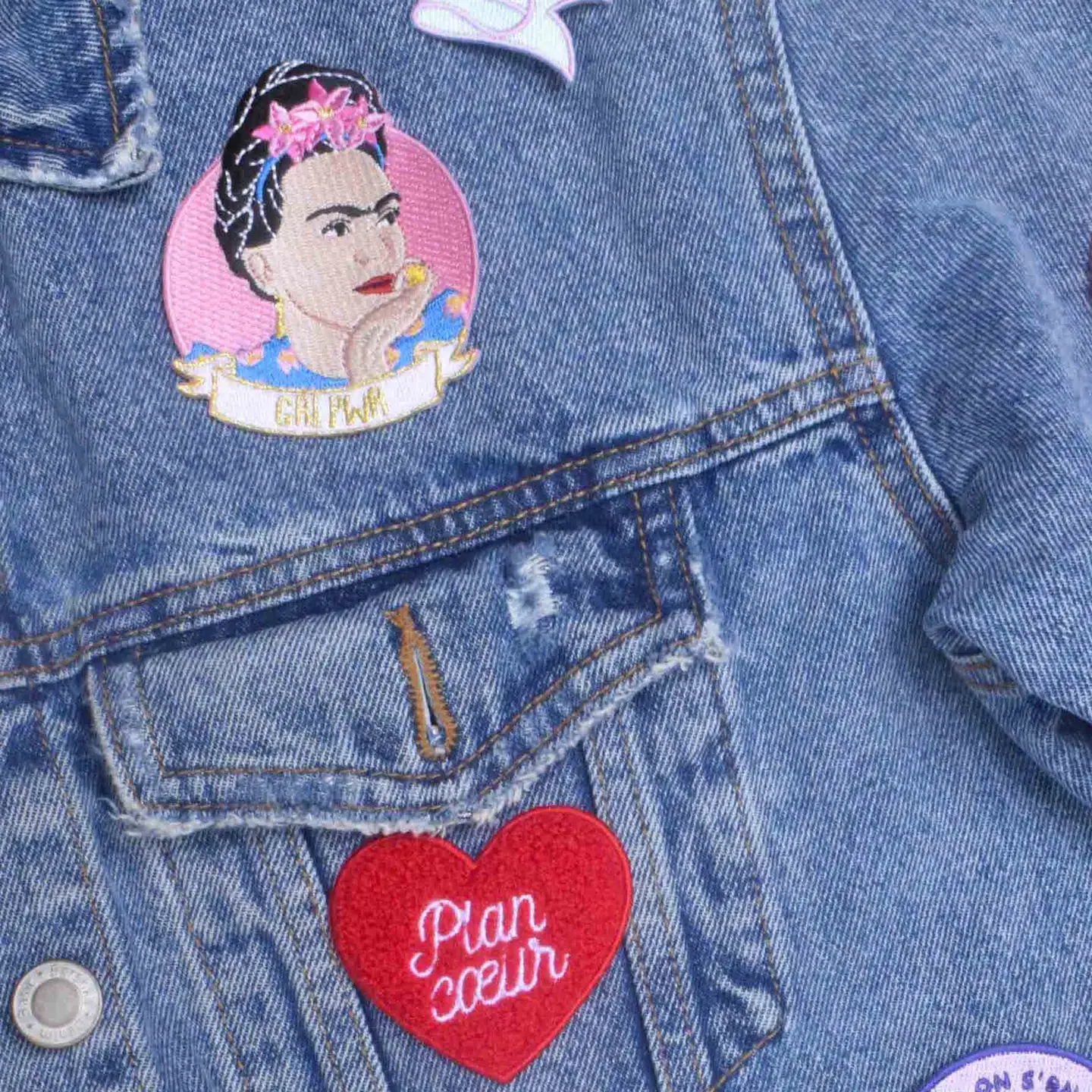 Bringe mit dem Bügel-Patch „Frida Girl Power“ Farbe und Empowerment auf jedes Kleidungsstück.