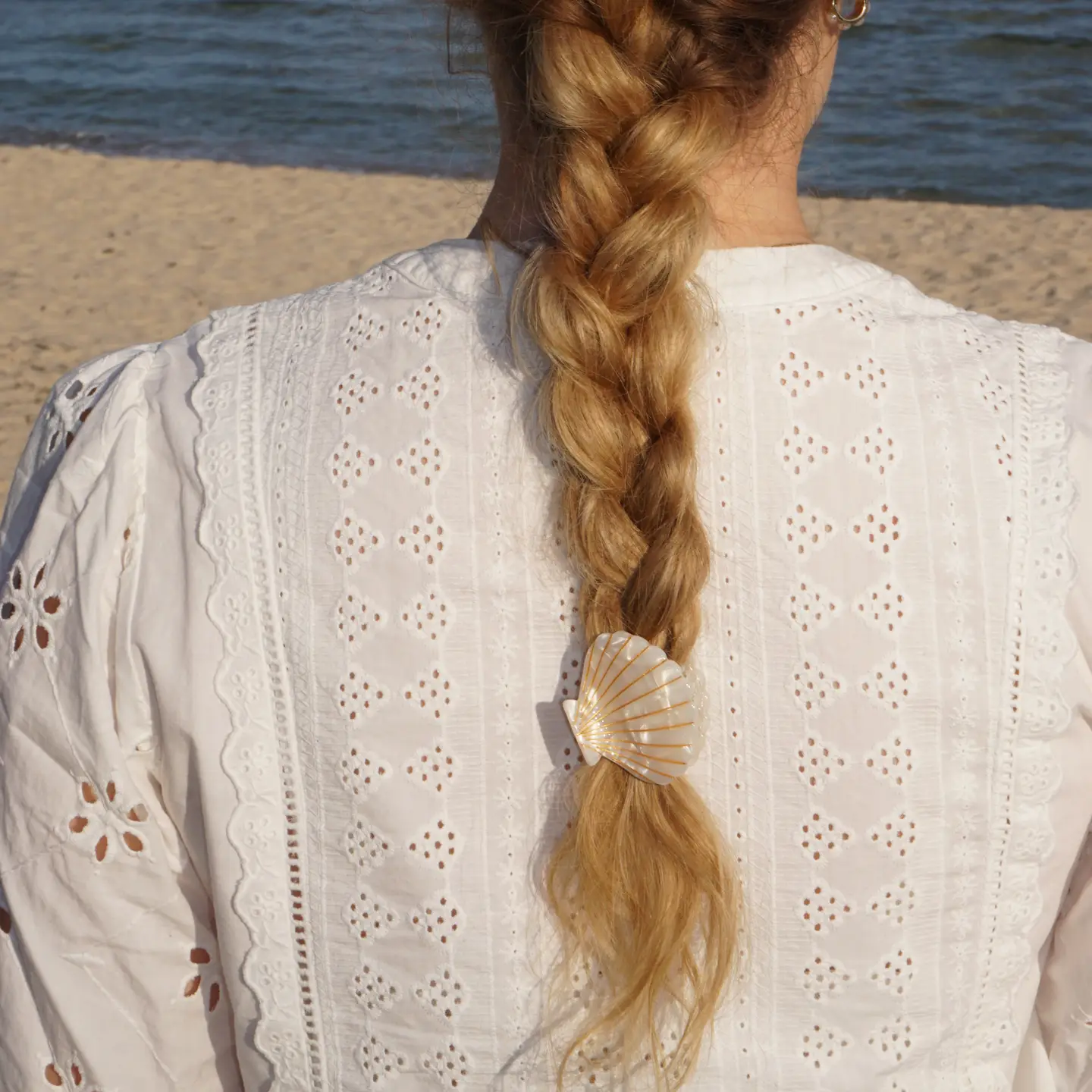 Die Muschel-Haarklammer Pearl sorgt für gute Laune und Strandfeeling bei jedem Styling. Und es wird noch besser – sie besteht nämlich aus Celluloseacetat, einem biobasierten Kunststoff, der aus pflanzlicher Cellulose gewonnen wird. Für einen schönen Look mit gutem Gefühl.