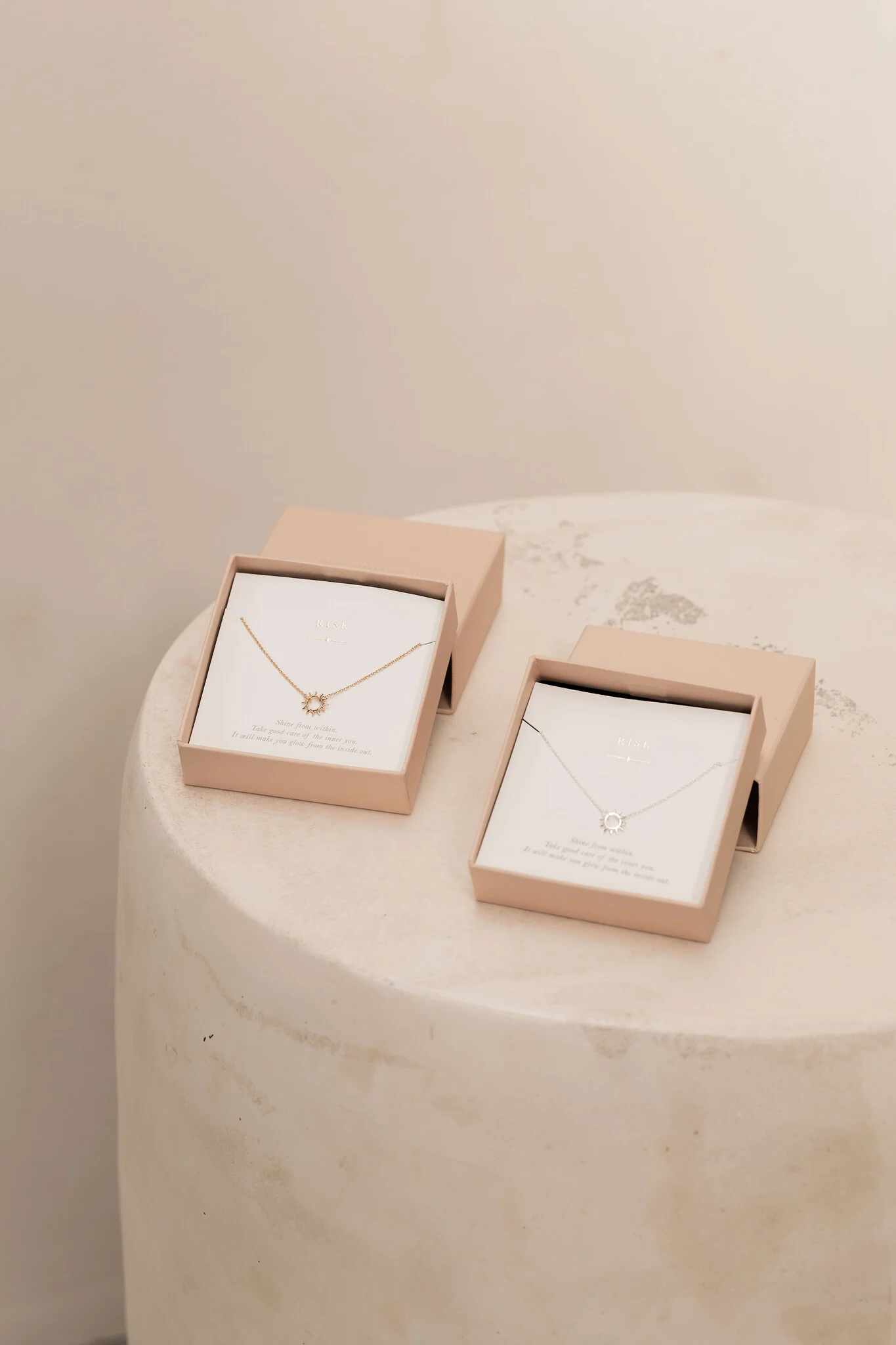 Dein inneres Strahlen ist immer da und es ist wunderschön. Die Halskette „Rise“ erinnert dich genau daran. Erhelle die Welt mit deinem einzigartigen Strahlen.