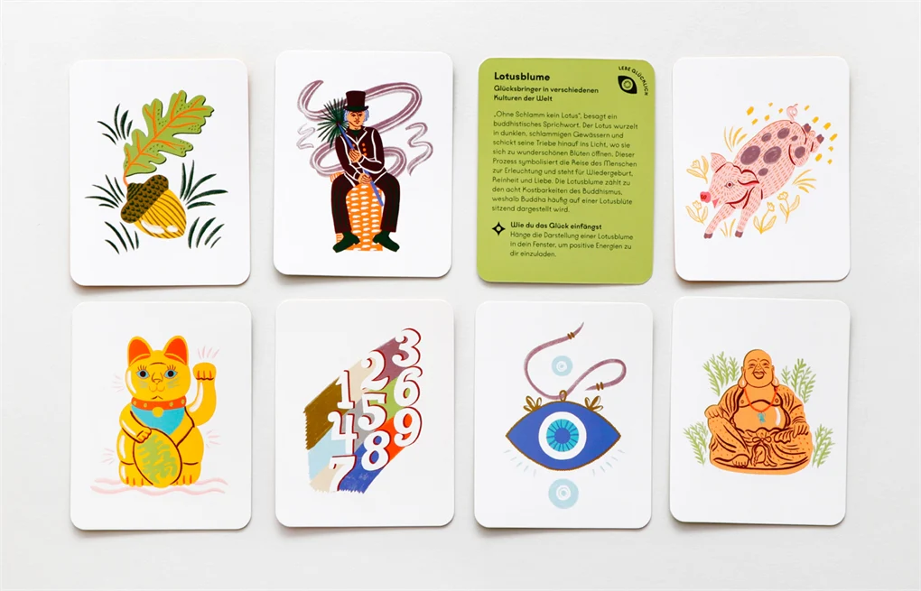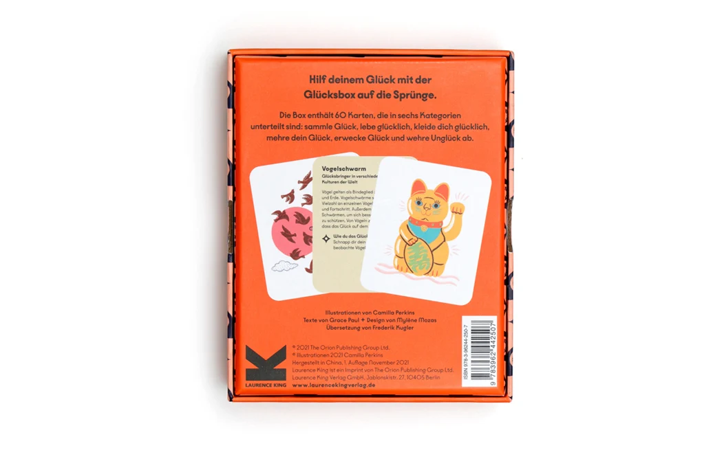 Vielleicht steht bald ein Bewerbungsgespräch an oder du bist aufgeregt wegen einem Date? Finde Halt und Inspiration in der Glücksbox von Laurence King. 60 wunderschön illustrierte Karten zeigen Glückssymbole aus der ganzen Welt. Ziehe eine Karte und manifestiere so mehr Glück und positive Energie in deinem Leben oder verschenke sie an einen lieben Menschen. Das beiliegende Booklet erklärt die 60 Glückssymbole und hilft dabei, positiv zu bleiben und dein Glück zu finden.