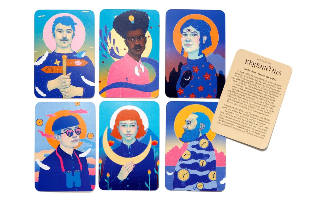 In diesem besonderen Kartenset begegnen dir Engel nicht als ferne Lichtwesen, sondern als moderne, farbenfrohe Begleiter, die einen zeitgemäßen Zugang zu ihrer Weisheit eröffnen.