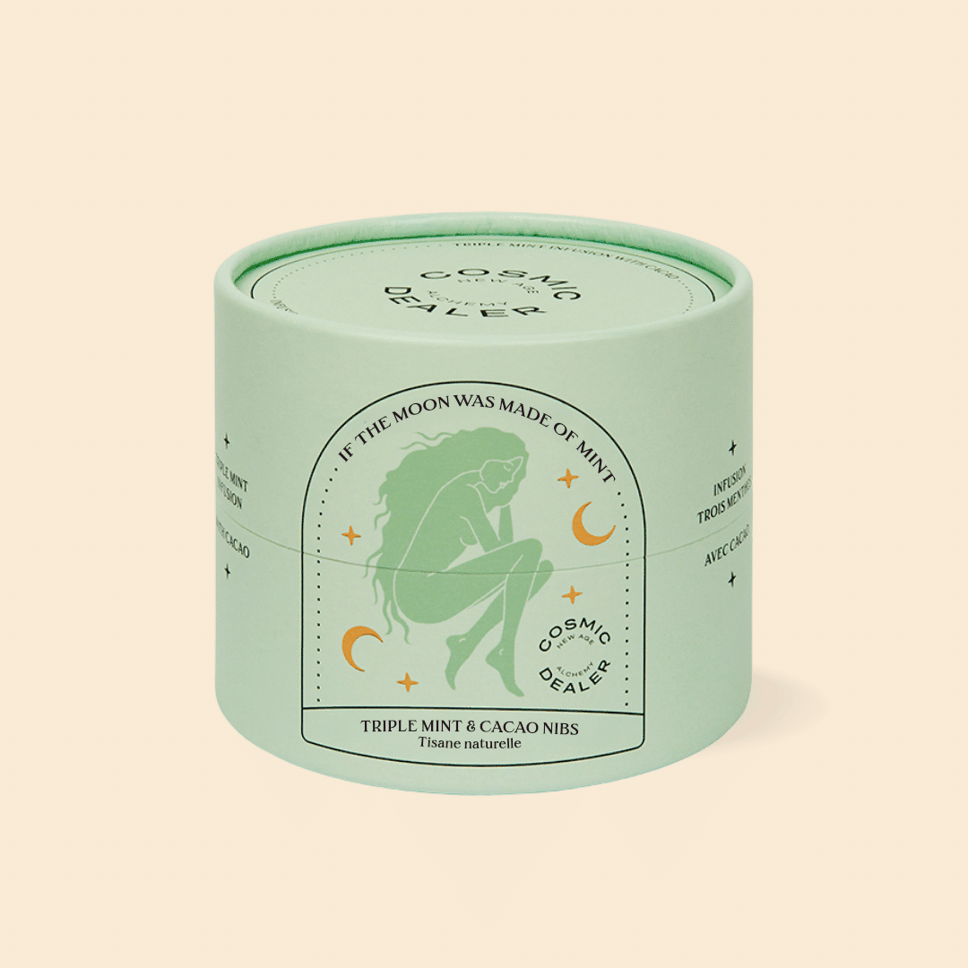 Die ayurvedisch inspirierte Teemischung Triple Mint & Cacao Nibs von Cosmic Dealer vereint süße Minze, grüne Minze und Pfefferminze mit zart herben Kakaonibs zu einer einzigartigen Komposition. Ideal für alle, die ihrem Bauch nach dem Essen etwas Gutes tun wollen oder einfach Lust auf eine erfrischende Tasse Tee Minze-Aufguss haben.