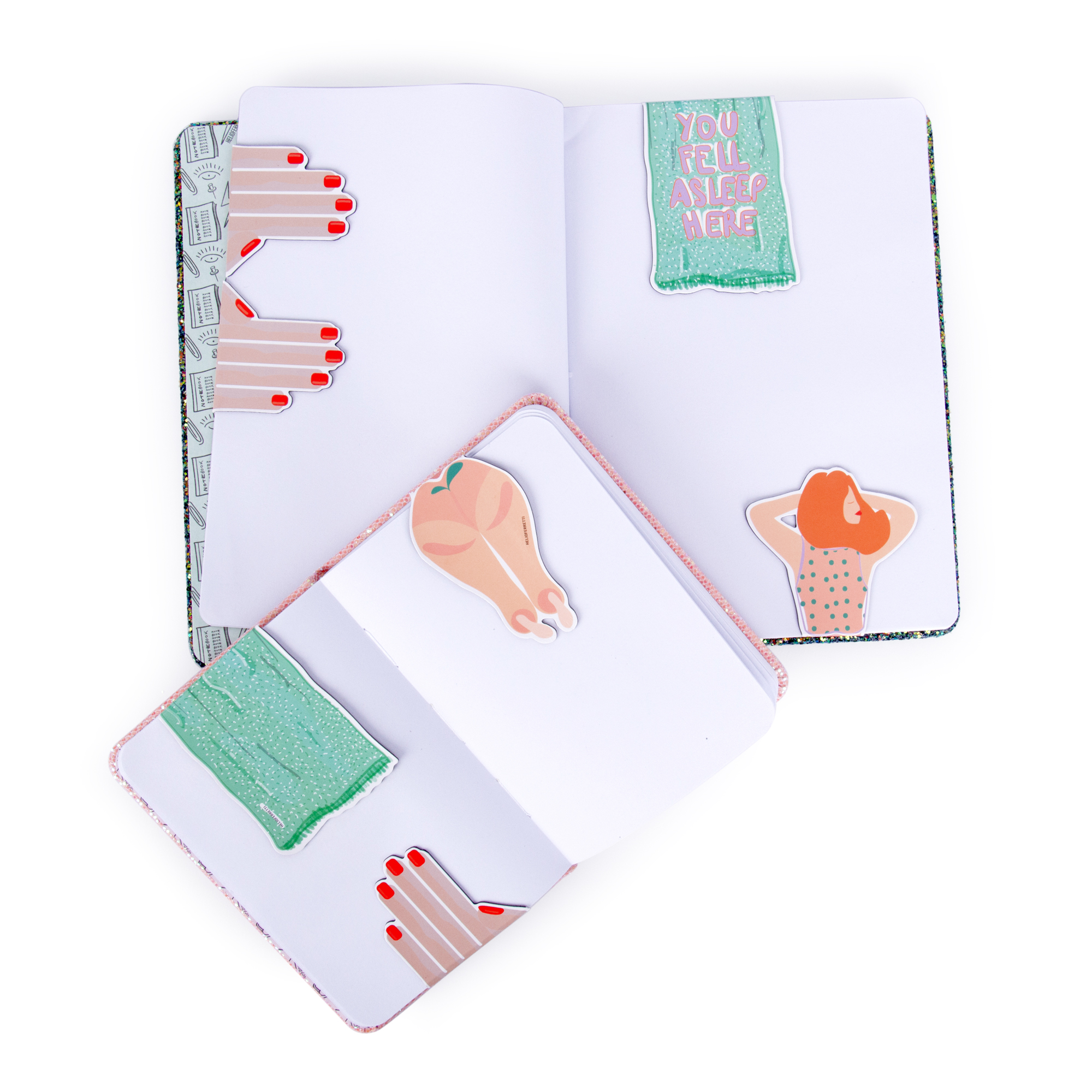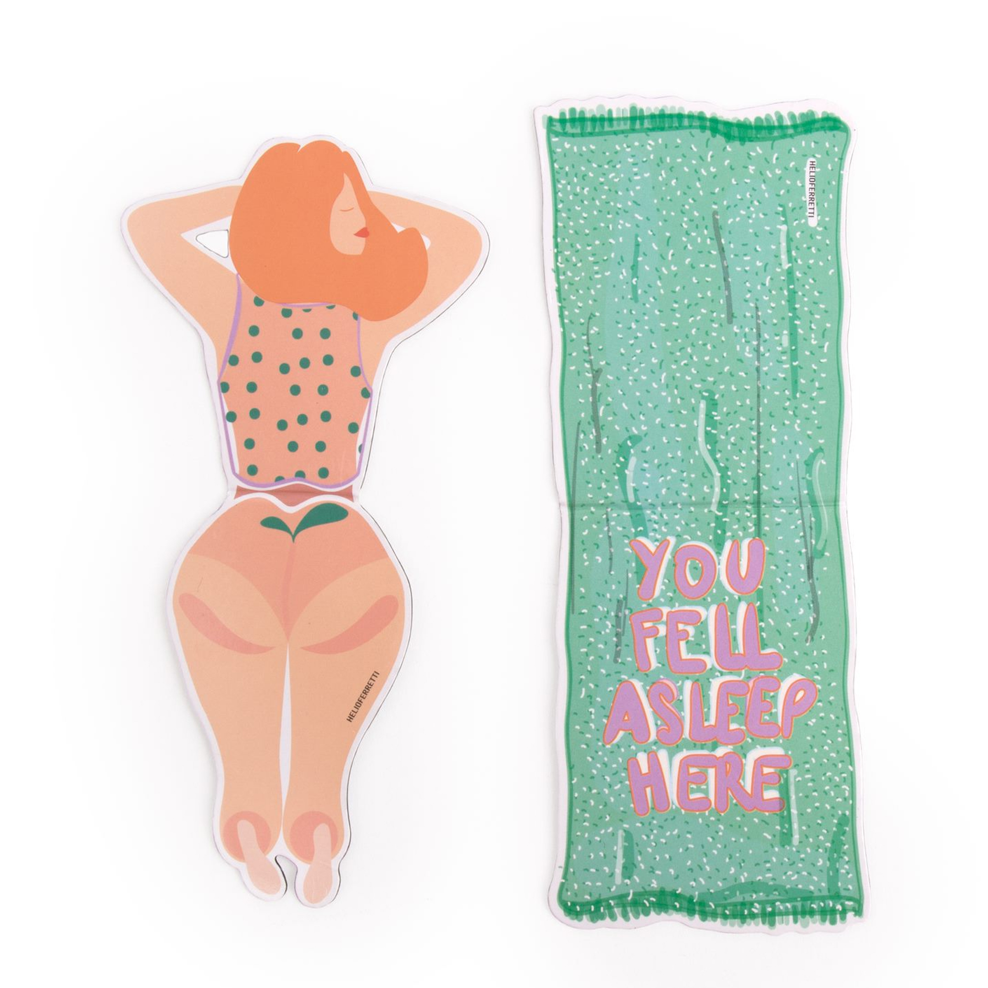Diese Set aus 2 magnetischen Lesezeichen mit den Motiven „Towel“ und „Woman in the sun“ bringt Sommerlaune. Einfach an die Seite klippbar. Ideal für Bücher, Journals oder Planer.